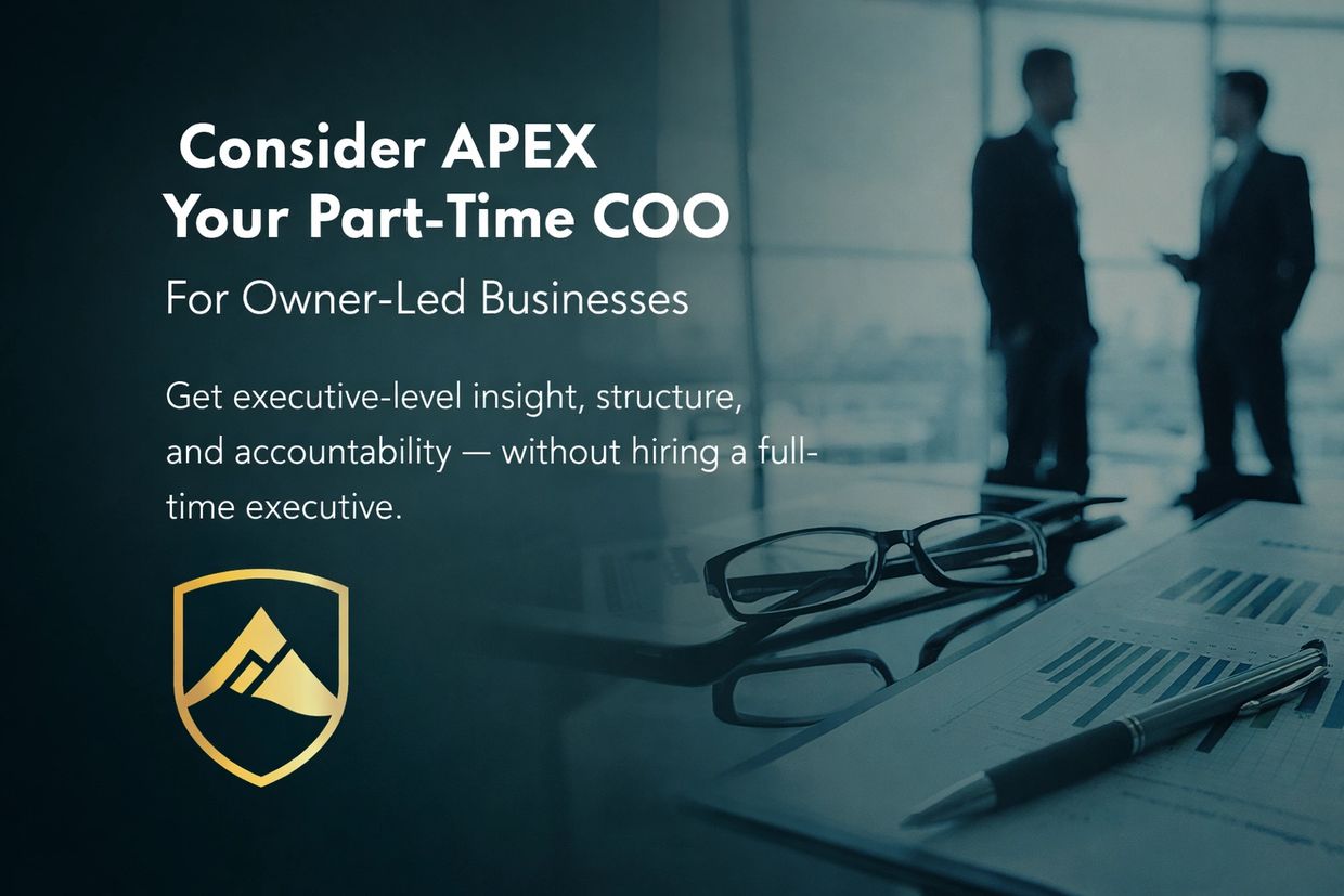 APEX operates as a strategic part-time COO for growth-stage businesses that need structure, discipline, and executive-level oversight without the cost of a full-time hire. We embed accountability, install performance systems, and drive execution cadence so owners regain control and scale with confidence. This is operational leadership applied with precision, focused on measurable results, margin protection, and long-term stability.